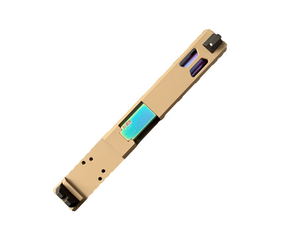 LFA Elite slide for Glock 17 Gen 3. In tough Flat Dark Earth (FDE) cerakote.All internals installed with recoil rodTall sights for co-witnessing to an optic.Crown/flush cut matte PVD oil slick/rainbow barrel for Glock 17 Gen 1-4. Finish will wear with use and metal to metal contact. Barrel hue and coloration is unique per batch.Requires lube and a break-in period.