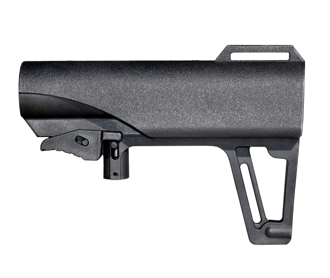 Upgrade your AR-15 with this Mil-Spec fin stock, designed for shooters who value simplicity, durability, and compliance. Featuring a streamlined pistol-style brace profile, it’s lightweight yet rugged enough for demanding use. Machined and assembled in the USA by Presma Inc., this stock supports standard Mil-Spec buffer tubes and offers a quick push-button release for easy adjustments. A trigger-lock type adjuster ensures a secure fit, while dual carry strap attachment slots provide versatile sling options.