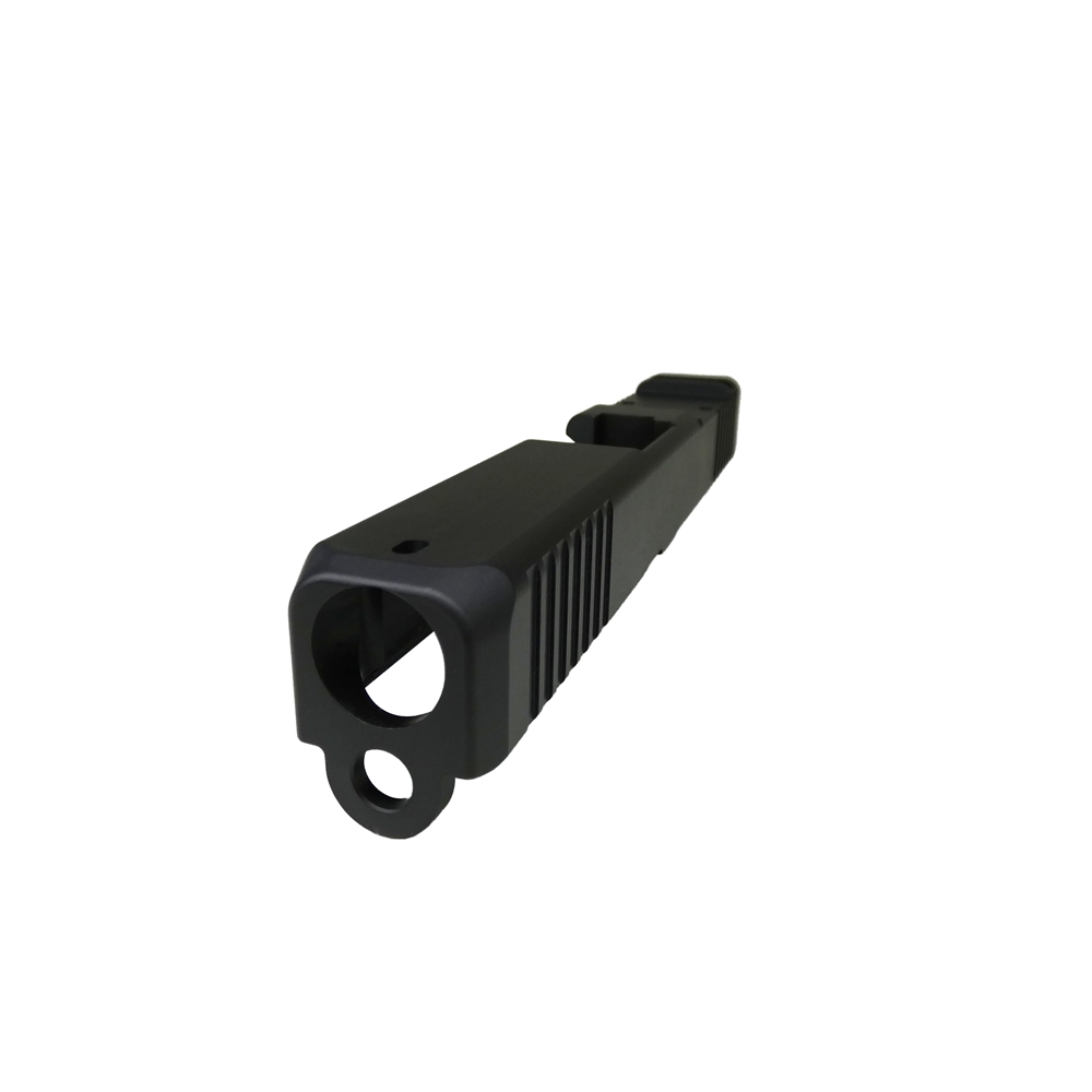 Bullnose black nitride slide for Glock 23 comes with cuts for installing iron sights and an RMR Optic cut for red-dots. Front and rear diagonal serrations make for ease of operation.